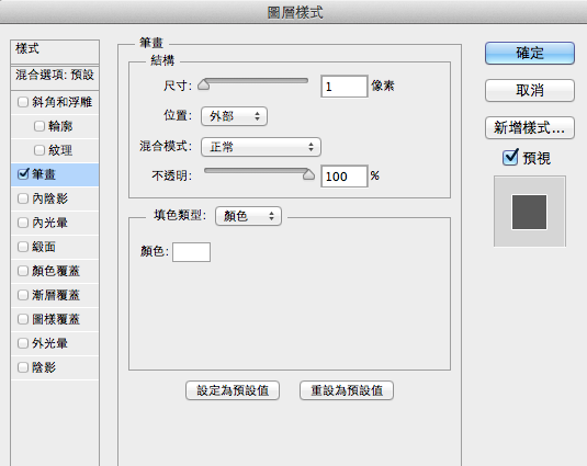 a. 圖層面板中,「圖層樣式」>「筆畫」